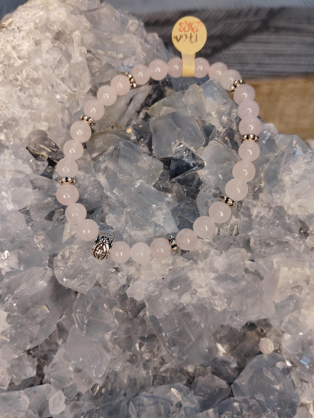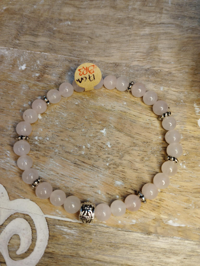 💥 Bracelet en quartz rose provenance Madagascar et breloques acier inoxydable. Le bracelet est monté sur élastique pour un tour de poignet de 17cm