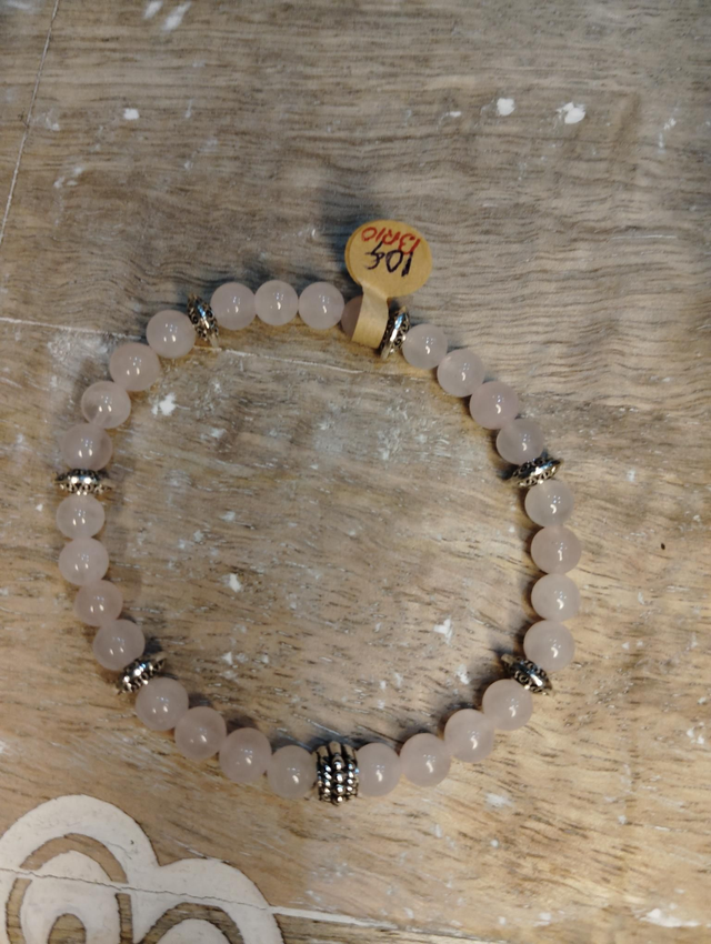 💥 Bracelet en quartz rose provenance Madagascar et breloques acier inoxydable. Le bracelet est monté sur élastique pour un tour de poignet de 17cm